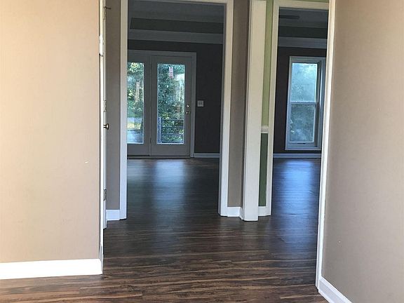 Don't judge a book by its cover! Add some Leyland Cypress trees & sod and this yard will be set. Charming interior has such character. The entrance foyer with crown molding, tiled & laminate floors and receiving closet lead to the great room and the kitchen. The large open kitchen has ample white wood cabinets, high ceilings, a beautiful Palladian window, stainless steel appliances, refrigerator and dishwasher under 2 years old. The large eat-in dining area within the kitchen offers a bay window and laminate floors. The great room offers a large tray ceiling with crown molding, a wood burning fireplace, recessed lighting and laminate floors. French doors lead out to the deck. The master suite has a tray ceiling with crown molding and a walk-in closet. French doors lead into the private bath that offers double vanities, private shower with seating, garden tub with a decorative window above, private watering room with a window and tile floor. All bedrooms have carpet and it is almost new. The third bedroom offers a Palladian window and high ceiling. Large laundry room offers wood cabinets and laminate floor. Hallways have chair rail, crown molding & laminate floors. There is an outside attached storage room for your outdoor needs. The foundation is on a crawl space. This gives you the option of adding gas, should you want gas logs or a gas stove. This house is precious.....