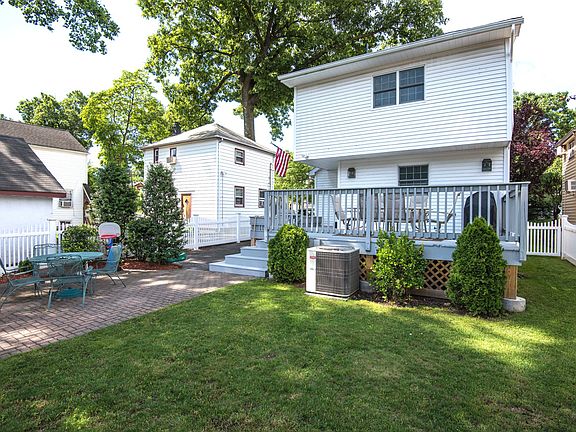 Move in condition, updated colonial, on prime, desirable Wood Ridge street with open layout & great backyard! Attractive curb appeal before you even enter this charming home! Entrance foyer opens into the large open layout of Living rm w/hardwood flrs & fireplace, dining rm, & into the updated eat in kitchen. Recent kitchen updates incl stainless steel appliances, beautiful mosaic stone tile backsplash & granite counters. Extra LG Master BR w/sitting area & excess closets. Good size 2nd BR w/hdwd flr, cozy 3rd BR ideal for childs rm or office. Updated full & Half Baths. Large bsmt could be finished for additional living space. Outside a great deck & backyard for outdoor fun! Extra Large "shed-house" is great for lawnmowers, paints & other gardening tools. Add the brand new Roof, new hot water heater, washer & dryer included, & Central AC & you have a great move-in ready home, on one of the most desired streets in town! Close to highways, great schools & NY Transportion! DONT MISS!