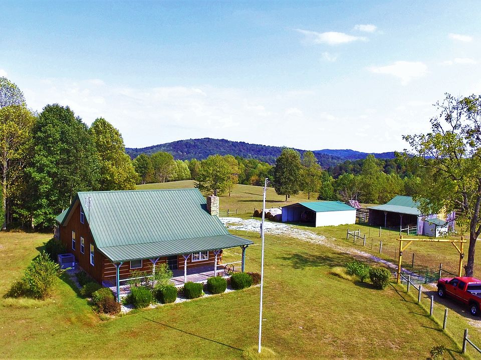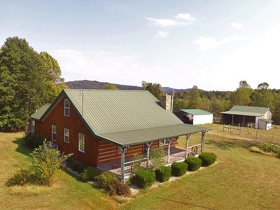 KENTUCKY LOG HOME WITH GARAGE, OUTBUILDINGS, BARN & POND Country living at its finest on this 26 acre farm in south-central Kentucky. Whether you are looking for a seasonal get-away or a permanent place of residence this property will work for you. Plenty of pasture for horses, cattle or other livestock. A pond provides water for the animals along with a livestock waterer in the pasture near the barn. Lots of woodland as well giving great hunting locations for whitetail deer, turkey and other small game. Private country setting only about 10 minutes from the town of Liberty but in a secluded area. The 1,600+/- square foot home was designed and constructed by the owner with attention to detail in every aspect, from the custom made cabinets in the kitchen to the tobacco stick balusters on the porch. Hardwood floors run in the open living room and kitchen area with carpet in the bedrooms and loft. A large kitchen island houses the built in range with additional cabinet space and room for barstools as well. Along with the range the refrigerator, washer & dryer remain with the home. Two bedrooms are on the main floor along with a guest bathroom and master bath. Additional space is available in the loft of the home for storage or play area for the kids. The home has central heating and air along with a propane fired fireplace for an additional heat source. There are also two sources of water. The cold faucet at the kitchen sink is connected to a well on the property with county water running everything else. Two porches are on the home with the back porch that includes a built in hot tub. There are two smaller storage sheds that remain with the property; one houses the well with concrete floor and room for more storage and the other has a wooden floor. The large 24'x32' garage is constructed from steel beams, has a concrete floor, electricity and water. Two large 10’ doors allow room for larger vehicles to get inside the garage. Also included is a barn to the right of the house and a 30' shed used for parking tractors, vehicles or other equipment. So much to offer you really must see this in person to appreciate all it has. For more information or to schedule an appointment to see this property call 877-286-3140 or Matt's cell at 270-572-3014.