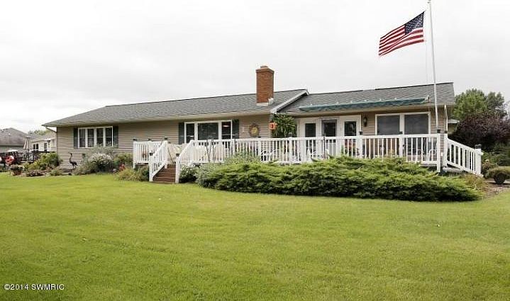 Beautiful home on Craig Lake with 175 feet of frontage, sandy beach with seawall. Craig Lake is part of the river chain of lakes in Coldwater. It is the most northerly lake. By boat you can travel nearly 12 miles down the chain. Home has a beautiful Hickory kitchen with large center island and all solid surface counter. First floor laundry, 2 fireplaces, extra large family room with built-in bookcases and storage, walk-in closet for extra storage, living room with fireplace. 1 1/2 baths, 2 bedrooms, crawl space with cement floor, all replacement windows, new siding, sprinkler system, 2 furnaces, heated garage. This is a year round home with a beautiful view all year long. 2nd bedroom was 2 rooms and could easily be made back into 2 separate bedrooms. Super home, quality appointments, great