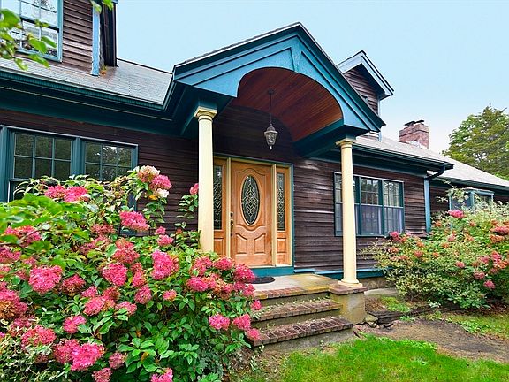 Not your cookie cutter home, 4 BR 3 BA Cape on 1.97 acres w/updated septic (7/17). Andersen windows. First floor Main bedroom (built in 2012) w/3 closets, cathedral ceiling and 2 skylights and heated floors, and full Bath. Hardwood floors in living area and multiple skylights in Great room (blt in 2005) w cathedral wood ceiling, Douglas Fir beams & mantle, Fieldstone fireplace, bay window & patio doors to 28x20 deck. Updated kitchen cabinets with granite counters, Dining room with pantry. Arched doorways, crown moldings, built-in china cabinet & ironing board. Back entry with mudroom/laundry. Horseshoe driveway edged by stone walls. Outbuildings include: 20’x49’ garage w loft,100 amp svc & heat, 20’x17’ Barn w loft and power, 16’x16’ screen house w power, 14’x40’ greenhouse w/oil heat/power, 12’x24’ cold house and 8’x8’ shed. Over 900 sq. ft. dry basement w/flue for woodstove. Red cedar fencing, apple, peach & pear trees and plenty of parking. Range priced property $650,000-710,000