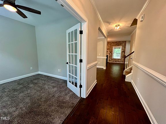 Impressive floorpan featuring an office/flex room on the main level, dedicated dinning room, large family room with a stone accent wall. Open kitchen with center island, quartz counters, gas cook top, subway tile backsplash and white cabinets. Mudroom from 2 car garage with shoe/storage cubbies. Primary bedroom on second floor with spacious bath, 2 sinks, separate tub & shower with tile floor. 3 additional bedrooms and full bath. Private backyard with huge lean to over concrete patio. Yard deck platform with wooded views.
