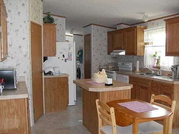 This Mfg. home is like new, 2007, with over 1,700 sq.ft. of living area. There is a formal living room, formal dining room or 4th bedroom as there is a closet in that room. Family room with entertainment center, kitchen with oak cabinets, island and all kitchen appliances. There is a year round sun room and a covered deck area, fenced yard and detached garage on approx. one acre, (.95 acre).