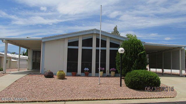 This 1248 square foot mobile / manufactured home has 2 bedrooms and 2.0 bathrooms. This home is located at 257 W Rama Dr, Green Valley, AZ 85614.