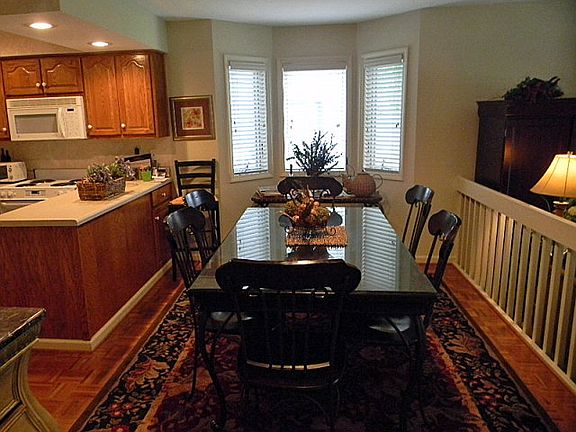 Lovely ponds and landscaping are the view. Steps from the porch access the large backyard space, the grill and picnic table. Great condition, fully furnished, ready to move in.