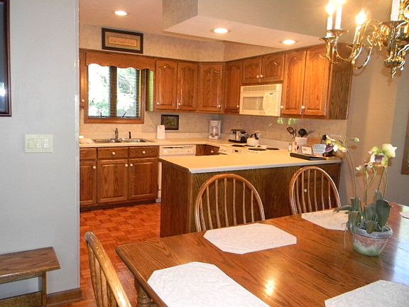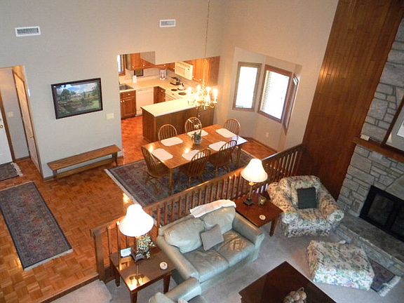 Custom built for this owner. 2 master suites, both master baths have showers, double vanities and Jacuzzi tubs.Renters love this unit. It is fully furnished including dishes & linens required for rental.Lovely location with large lawn space, beautiful landscaping a babbling brook & 2 ponds.