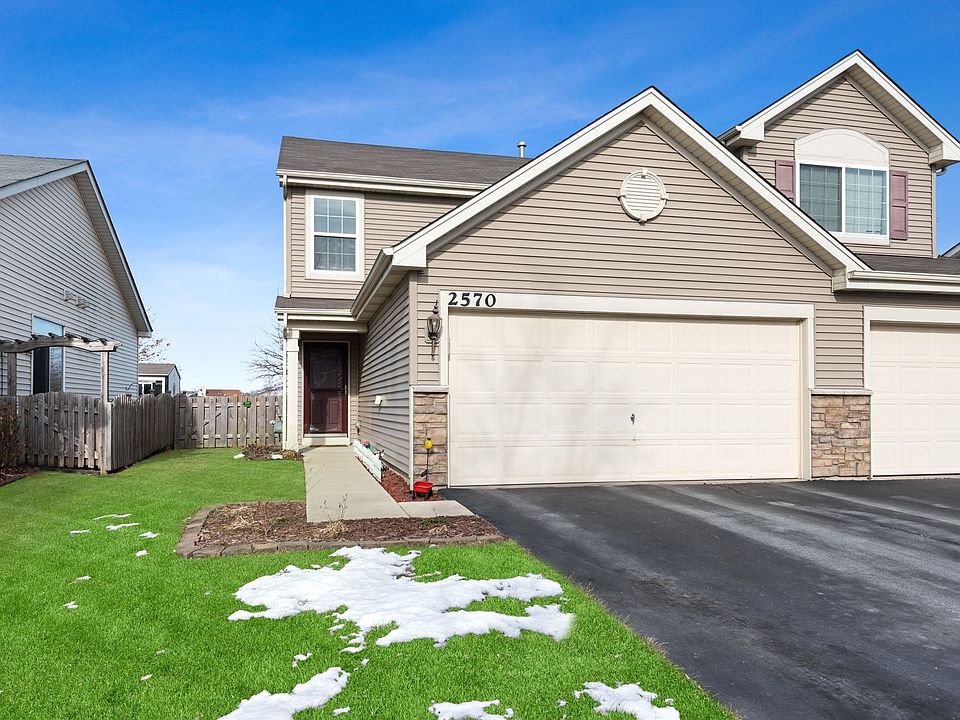 Super 2 story townhouse backing to the pond, with great views. 2 beds, 2.1 bths, 2 car garage. Brand new Furnace end of 2021 with warranty and same time new hot water heater! Fresh modern paint, upgraded kitchen cabinets, w/ new hardware. Redone countertops and backsplash. All appliances that are staying.Upgraded shelving in the laundry rm,and the main bath, that are staying. Vaulted ceilings in the main bedrm and a walk in closet too. New blinds in the LR, Blackout shades in main bedrm, All shelving in the 2 car garage are staying. The fenced yard facing the pond has brick pavers that have been all releveled this past summer, so you can really enjoy viewing the pond while enjoying sitting on the patio. Have all offers in by Friday 1/28/21 by noon, Highest and Final!