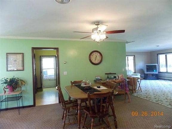 Solidly built brick and aluminum ranch style home. Huge living room and eat in kitchen. Family room currently being used as formal dining room. Three bedrooms, two full baths. Roof new in 2012. Two car detached garage plus a 30x60 pole barn. 1.14 acres. Lots of trees.