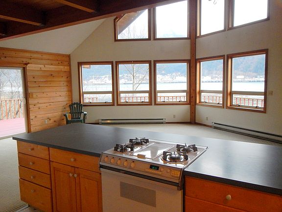 Conveniently located waterfront villa with views of downtown Juneau, northern lights, cruise ships, and of course, the fireworks in July. This home is perfect for entertaining, with the open floor plan, expansive windows and wrap around deck. Three bedrooms, two bathrooms, claw foot tub, metal roof, and a parking deck engineered to hold a garage. Make this home your own. If you are lucky enough to live on the water, you are lucky enough!