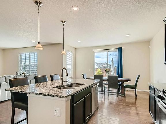 This Stunning family home located in the peaceful neighborhood with great access to E-470, I-25, DIA, and just minute from retails, restaurants, The Premium Outlets and so much more! This 4 bed 5 bath home is well-maintained. The open concept floor plan allows the kitchen to flow into the dining room. The main level offers real wood floors throughout, an office, a huge kitchen, dining, and living room space. The kitchen includes upgrades like beautiful wooden cabinetry, stainless steel appliances, gas range, and large center island with granite countertop. The dining and living room feature tons of windows opening to the landscaped backyard and breathtaking natural light. Upstairs you'll find the primary bedroom with a walk-in closet and an en-suite bathroom with dual sinks, granite counters, and a huge walk-in shower. There is an additional bedroom with its own bathroom and 2 more bedrooms with a jack n jill bath. In the finished basement you will find a powder room, living room, and rec space perfect to entertain or lounge around on a lazy weekend! Also, the basement has storage under the stairs as well as an additional unfinished storage/work room. Another feature of this home is the Solar Panel, which saves you 95% on electricity bill. This house is surrounded by walking trails and a playground is just down the block. Home will be rented unfurnished. Tenant responsible for all utilities. Pet friendly and no smoking allowed. Owner pays for HOA, tenant responsible for all utilities. Pet deposit required, and no smoking allowed.