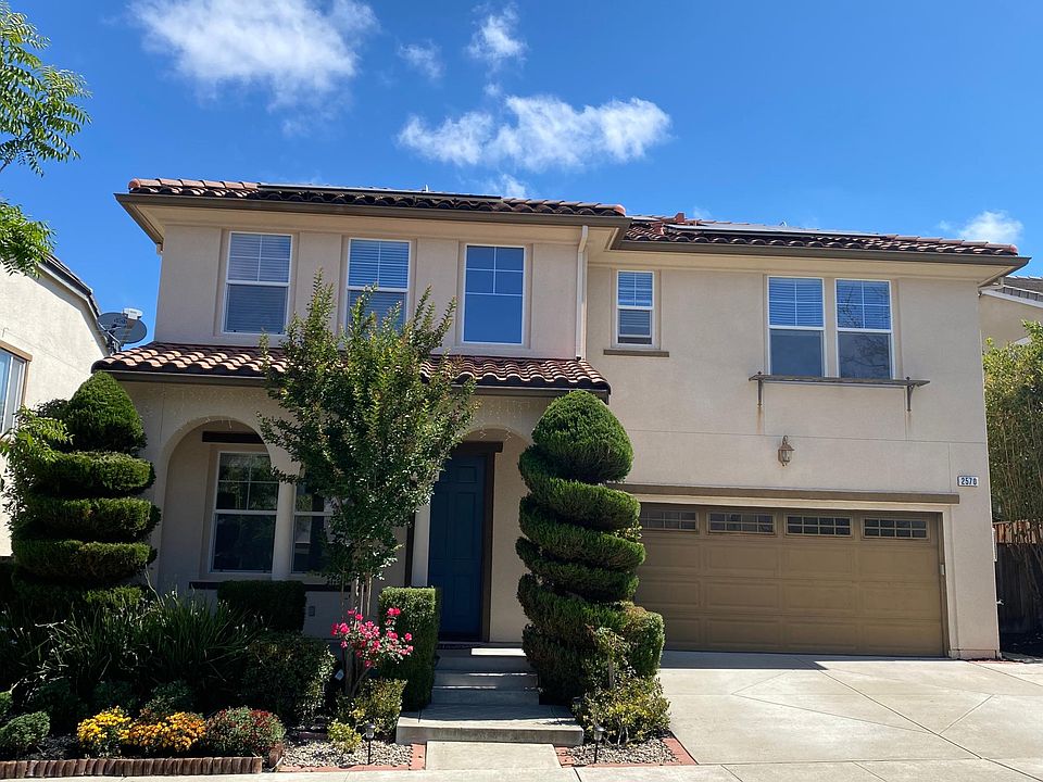 Gorgeous single family house in the highly desirable Windermere in San Ramon! 4 bedroom (plus an office), 3.5 bathroom, 2597 sq ft, on a 4,993 sq ft premium lot. Award winning top rated schools nearby: Live Oak elementary (0.3 miles), Windemere Ranch Middle School (0.8 miles), Dougherty Valley High school (2.4 miles). Formal dining room, gourmet kitchen, spacious family room with gas fireplace, and master bedroom suite are on the first floor. Upstairs are three spacious bedrooms, including a bedroom suite with its own bathroom, an elegant glass office in the loft, and laundry room with sink. The backyard is professionally landscaped with automatic irrigation, a beautiful waterfall, many mature fruit trees including persimmon, orange, peach, apple, fig and grape. Attached 2 car side-by-side garage with cabinets along the wall for storage needs. Central Heat/AC. Solar system. The monthly electric cost is very low. Garden maintenance and pest control are included. Please E-mail or text to arrange a viewing. Tenant pays all utilities. One year lease. Approval required for pets.