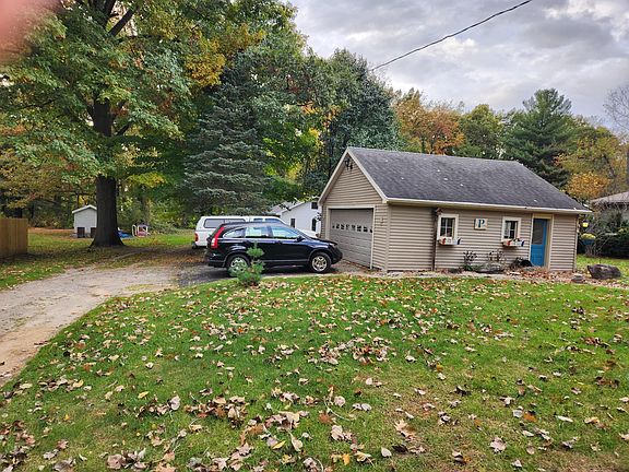 Motivated Sellers! This 4 bedroom, 1 bath home sits on over a half acre. You will love this quaint lake community with public access a short walk away. Spacious rooms throughout featuring an open staircase and living room with a gorgeous stone fireplace as well as wood burning stove in the basement. Between the 2 they could heat this home on their own. Two covered porches accent this lovely home. There is a huge 3 car garage with newer roof, as well as an additional two car garage with 440 electric and a roof that is only 5 years old. LP Tank owned. Both outbuildings have their own metered service. Newer furnace in the home. Let your imagination run wild with endless possibilities for storage, tinkering, swimming, and family living with this amazing 4 bedroom wonder!