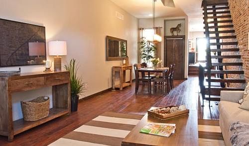 Beautifully renovated ~industrial chic~ townhouse in historic Reservoir Hill adjacent to Park,minutes to downtown.Stunning design features include hwd fls,metal stairways,glass tiles,ss app,high ceilings and exp brick throughout,enhanced by designer touches.Entertain in the open1st floor w/rustic bar next to a modern kitchen.3 light filled master suites with own full baths.Relax on your rear deck.