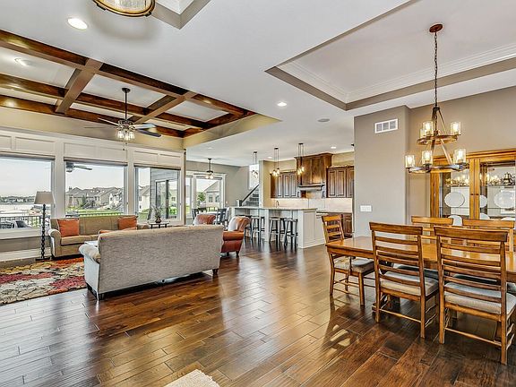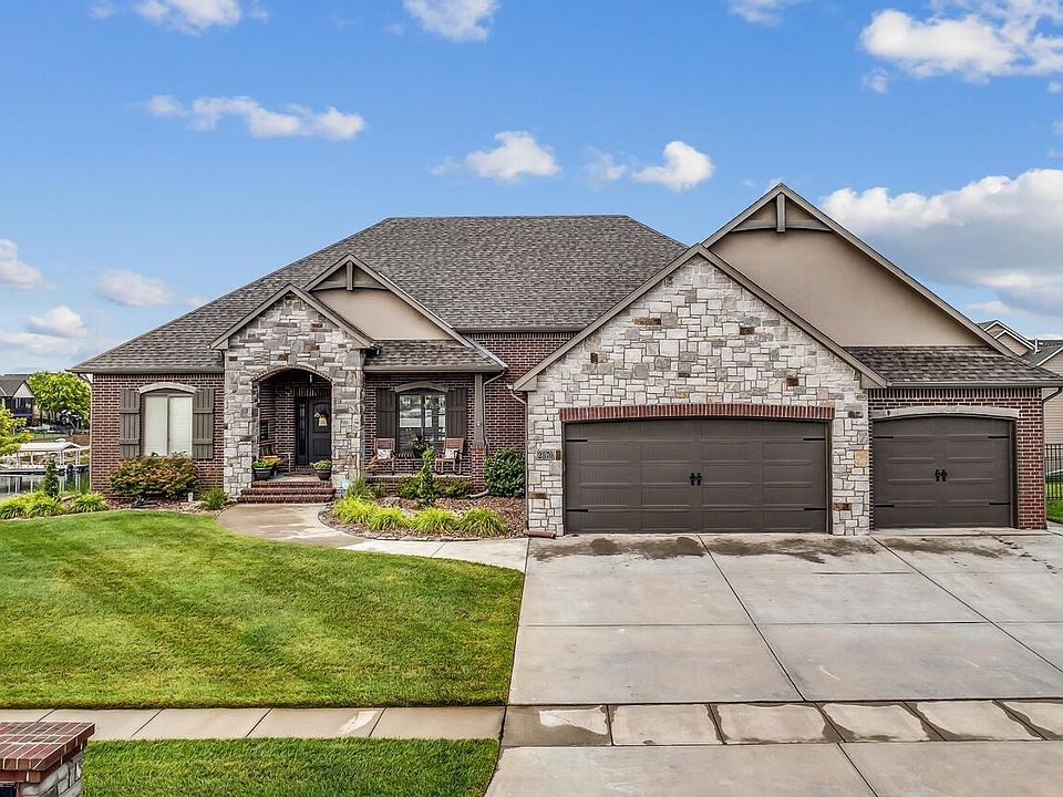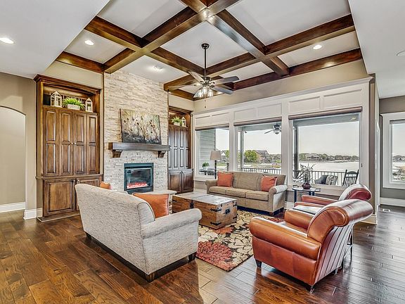 This Craig Sharp Custom Built, one owner home is a WOW! Beautiful lake views with an East facing backyard on "no wake" portion of the lake. Home includes boat dock with lift and wave runner port. Added bonus is the 220 Volt hot tub outlet on South backyard patio. This home has 6 bedrooms, 5.5 baths. 2nd & 3rd bedrooms on main floor have full attached bathrooms. Large bonus room above can be used as an office/bedroom or playroom. Basement hall full bathroom has direct access door to the patio for easy access from the beach. So many great features to this home. The sellers gave much thought to details when building. Emerald Bay offers 100 acres of boating/skiing lake. There is a neighborhood clubhouse and pool, along with pickleball and beach volleyball courts.