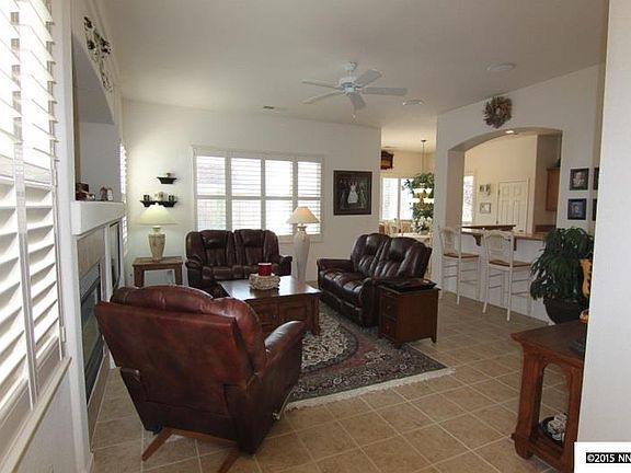 Meticulously maintained home in desirable Damonte Ranch. Rare find for popular 1-story greatroom floorplan with over 1600sf featuring 3 bedrooms and 2 baths. Kitchen is spotless with solid surface countertop and raised bar, perfect for entertaining. Relax in the private master suite with dual vanity, jetted garden tub and separate shower. Plantation shutters on all windows, tile flooring throughout all living areas, organizers in every closet. Backyard is an oasis and must see to appreciate!