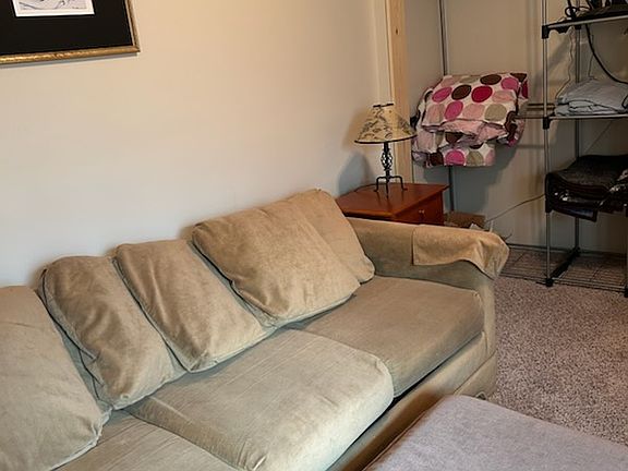 Large bedroom with large window and large closet. Quiet area close to outdoor recreation. Separate entrance. Off-street parking and guest parking. Includes bathroom with separate vanity area, large drawers and large closet, shared with tenant of the other room. Includes additional shared sitting room with kitchenette with microwave, mini pizza oven/toaster oven, and induction-burner hot plate. Full size refrigerator. Couch with pull-out bed available in sitting room on request. Beds not included. Perfect for singles, a couple, or roommates. No smoking. No pets. 12 month lease required. 2 references required