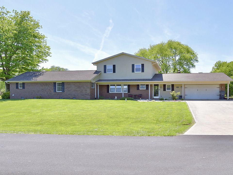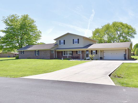 NO HOA & 1+ acres located 10-15 minutes from Edinburgh shopping, Franklin College and 65 access. This beautiful home has a master suite on the main floor with HIS & HER recently updated bathrooms & CLOSETS, it's own new HVAC system, and a private patio. Plus a master suite upstairs & 2 bedrooms- all w/new flooring, trim & paint, & updated full bath. Kitchen has been recently updated & includes all appliances. Updated DR w/ new paint, flooring & gas fireplace. 1/2 ba w/ new floor, paint, sink, lights & mirror. LR has new flooring & paint. New banisters & Railings. New 2023 sump pump w/alarm. Basement has new flooring & paint & wet bar +storage. Water Heater 2020. Inground pool, stamped concrete, firepit, Minibarn, baseketball court, zipline