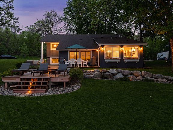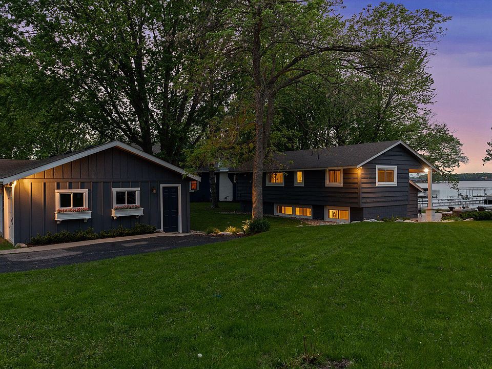 Striking level lakeshore offering impeccable views and sunsets over gorgeous Spring Lake. This 3 bedroom, 2 bath room home is move-in ready with updates from top to bottom. Vaulted ceilings paired with abundant lakeside windows provide this home with generous natural light. The large, maintenance-free, wrap-around deck is just steps from your dining room that boasts panoramic views. This is a must-see lake home located on a quiet recreational lake just outside of city. Large three stall garage for ample storage, bring your lake toys.