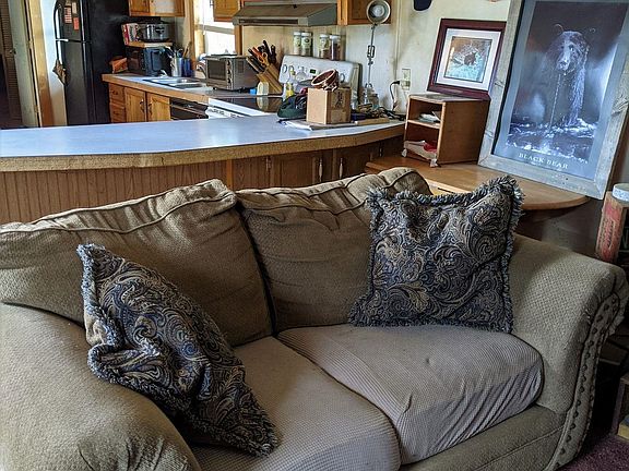 This spacious mobile home in Cambridge is ready for your updates! With great square footage and stunning views, anyone with an eye for cosmetic upgrades would feel right at home in this property located halfway between Jeffersonville and Waterville. Inside, 1000+ square feet welcomes you. Step into the living room, open to the kitchen/dining space. The kitchen features a large peninsula for seating and workspace. A dining area has room for more seating and has its own light fixture. Off the kitchen, you’ll find a primary bedroom with a private bathroom. At the home’s other end is two smaller bedrooms sharing a second full bath. The bedrooms have ceilings fans and closet space. Outside, you’ll find a small back and front porch, and a shed offers storage or hobby space. The star of this home is the mountain view from the back of the home. Take in the peaceful Vermont landscape and enjoy the country life while still having great accessibility to nearby towns!