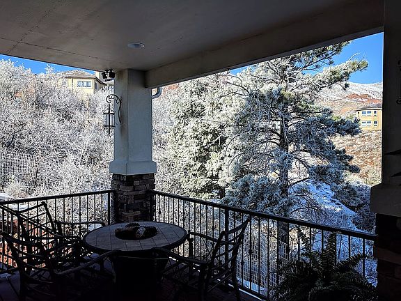Custom build home in 2013 has granite countertops throughout, cherry wood cabinets and hickory hardwood flooring, Radiant Heating, Air Conditioned, Circulating Hot Water, Wine Room....House has a surround security system/cameras, intercom system throughout including lower patio area and large covered main floor deck for superior entertainment. Heated 3 car garage also includes a work shop area and more storage. House has internal vacuum system. Large Gourmet kitchen with granite counters, soft close cabinets, double ovens, large Island and oversized walk in pantry. Pantry is a chef's dream with electrical for your mixers or bread makers, wine racks, granite countertops, wine bottle refrigerator, pull out drawers for food storage and tile work with Italian vineyard wall painting. Large roomy mudroom from garage to home features wood benches for sitting, hooks for coats and large closet area. Large laundry room adjacent to mudroom has lots of built in cabinet space, 2 countertop areas along with large sink and door access to back deck. Garage has a workshop area with utility sink and built in cabinets and storage area. All windows throughout home have beautiful views of mountains or city scape views. Large formal entryway has 2.5 story high ceiling and a circular staircase, Italian hand made glass chandelier and beautiful windows above door for a stunning city view. Steel security stained glass front door. Large Master suite with attached Spa like Master bath featuring an oversized shower, Jacuzzi tub, granite counters double sinks, walk in Master closet. Bedrooms on the upper level with additional large bathroom, with high ceilings and large tiled walk in shower with sitting inside. Large hallway with 12 foot ceilings. Recirculating hot water heater, external outdoor speakers, high ceilings throughout, hookup for gas grill. Fully landscaped with iron work front gate entry and enclosed upper area. Front yard landscaped with fountain, bubbling rock, and 2 tier waterfall. Entire yard is on a drip operated watering system.