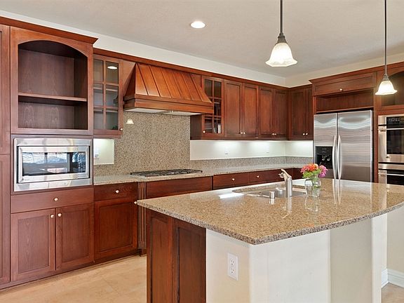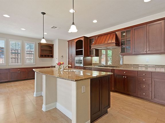 Immaculate former model, located directly across from the park with beautiful upgrades. Exotic hardwood in LR, DR, FR and den. Built in media center in FR, crown molding, plantation shutters, custom mantle, custom tile inset in entry and ceilings fans in bedrooms. The kitchen is open to the family room with double ovens, Bosch & GE Monogram appliances and a large granite center island with sink. The relaxing patio and yard comes with plenty of space for entertaining and a nice firepit. Community pool.