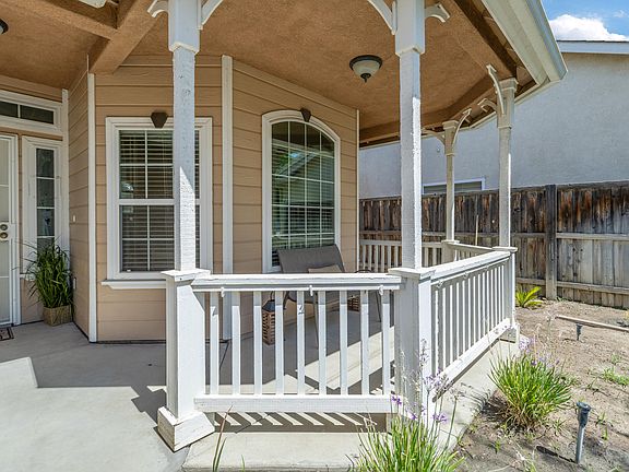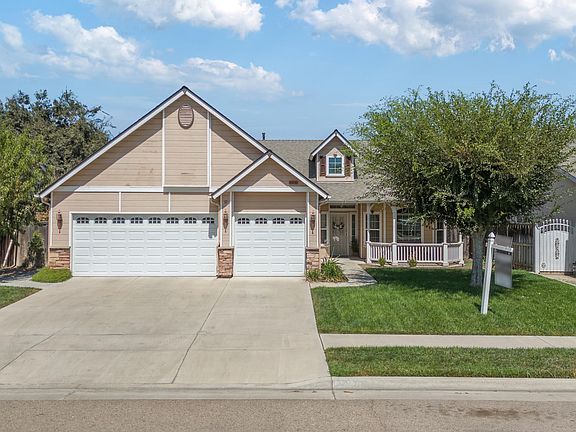 A charming single-story home is ready for its next owners in a desirable Tulare neighborhood, conveniently close to local schools. This spacious 1,868 sqft house features four bedrooms and two bathrooms. Inside, you'll find an open and airy floor plan that connects the living and family rooms, making it a great space for gathering with friends and family. The gallery-style kitchen is a chef's dream, with granite countertops, tile flooring, and two ovens. The generously sized master suite provides a peaceful escape, featuring a walk-in closet and a private bathroom with a dual vanity and a soaking tub. Step outside from the master bedroom or the dining room to enjoy the delightful covered patio, ideal for relaxing. Additional highlights of this home include a three-car garage with an automatic opener, a well-kept front yard, and a welcoming front porch, perfect for enjoying your morning coffee. This well-maintained home is a must-see! Contact your trusted realtor for a private showing.