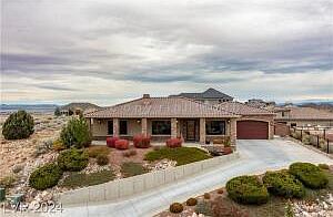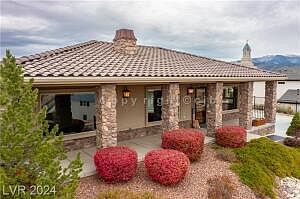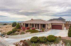 This exquisite single-story rustic modern home is designed for optimal views & comfort. It features 3 bedrooms, 2 full baths, a 1/2 bath, & a den/office. Inside, vaulted ceilings & a cozy fireplace enhance the living room ambiance. Enjoy the convenience of a radiant heated driveway & an attached enclosed patio with its own fireplace. The gourmet kitchen boasts Kitchen Aid appliances, a Zephyr exhaust w/a custom hood, granite counters, & wide plank antique wood flooring throughout. Elegant details include 10' ceilings, 8' doors, cultured stone arches, & exposed beams. The exterior combines stucco & cultured stone with a durable barrel tile roof. An oversized garage w/a workshop area (220v) & a hot water faucet adds practicality. A cement apron & covered porch complete this inviting retreat