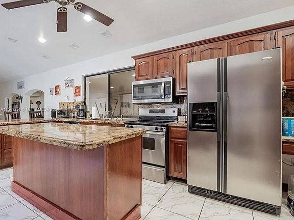 Beautiful Ranch style home sitting on 2.35 Acres! This home features 4 bedrooms. 2 bathrooms and 3, 273sqft! New bedroom carpet is over laminate. Spacious, tiled living areas with a lot of windows providing natural light. Updated kitchen with stainless steel appliances. One of a kind large atrium in the center of home with fountain & rooftop pyramid skylight. New shingle roof (2018). Both A/Cs less than 6yrs old. Home situated at back end of lot for ultimate privacy. Fully fenced with new gate entry system. Diversity of fruit trees on properties, Sprinkler system with a separate water pump. New house backup generator (powers EVERYTHING plus A/C in bedrooms) & propane tank. Extra large shed, and horse stables and run. You won't want to miss this opportunity! Priced to sell.