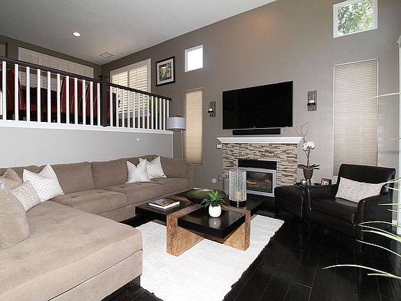 Immaculate model perfect town house located in the Palisades in Stevenson Ranch. This bright and airy 3 bedroom, 2.5 bath home is move-in ready! Living room has high ceilings, fireplace and custom plantation shutters for glass sliding door. Dining Room has a striking custom-designed bar with stainless steel wine fridge, and under counter kegerator and beer dispenser. Perfect for entertaining! Kitchen has upgraded cabinets with pull-outs, granite counter-tops and island. Stainless steel stove, microwave and dishwasher. Beautiful hardwood floors and tile throughout. Large 2 car attached garage with storage cabinets. Perfect location, close to freeway, A-rated schools, shopping centers, and restaurants. HOA includes 3 community pools, water, trash, community maintenance and security patrol.