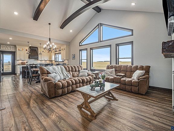 Perfect Location, Perfect View, Perfect Build! If you’ve been waiting for the perfect acreage to come along, this is it! Located on 6 acres, this 4 bedroom 3 bath ranch walkout has so much to offer! Enjoy the wonderful open floor plan. Vaulted Ceiling w/Beams – Beautiful Gas Fireplace & Windows Galore! The kitchen offers stunning white cabinets, quartz counters & a huge walk-in pantry. A wonderful covered deck w/hot tub to enjoy those summer sunsets. The owners suite is spacious & has a beautiful bath w/big soaker tub and tile shower – nice walk-in closet. A main floor office w/French doors, ½ bath & laundry/mudroom complete the main level. The LL features in floor heat, a huge family room w/wetbar & space for entertaining along with 3 bedrooms w/ big closets & a full bath. 54 x 48 shop you won’t believe w/a shop & office. A whole acreage generator (all automatic), camper pad/hook-up w/sewer, chicken coop, 200+ trees, & more! A little piece of paradise close to everything you need!