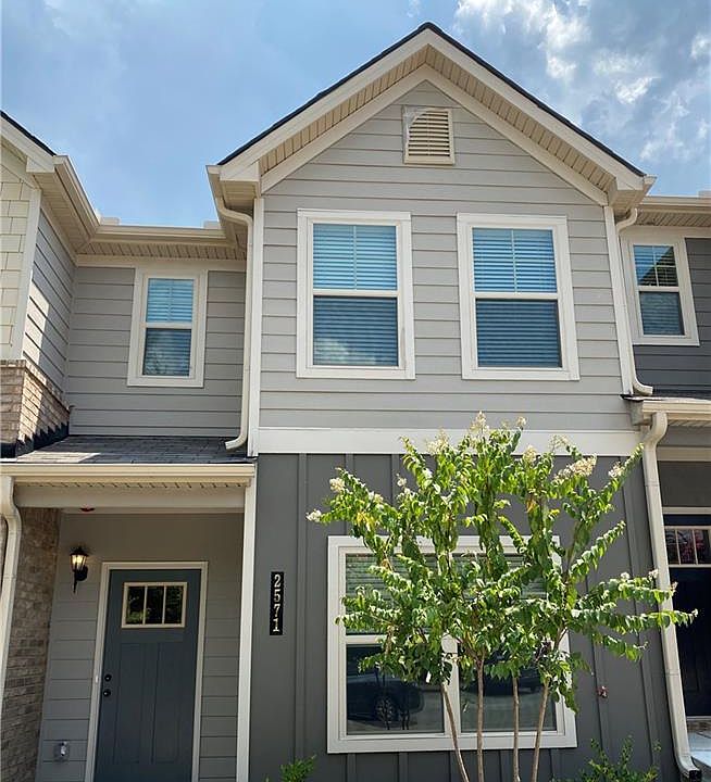 This lovely two-story townhome was built in 2021 and offers a bedroom and ensuite bathroom on the first floor. Enjoy family and friends in the open concept living room and dining space with a well appointed kitchen that includes gray cabinets, granite countertops, a kitchen island, pantry, and stainless appliances. The second floor offers a roommate floorplan with two oversized bedrooms, two bathrooms, and walk-in closets. The laundry is conveniently located upstairs as well. Entertain outside on the Rear patio that’s perfect for grilling and relaxation. Seller will pay$500 HOA initiation fee! HOA fee covers: pool, water & sewer, exterior termite bond, shared line plumbing, common area landscape, outdoor repairs and maintenance, signage for community and insurance This home is conveniently located near major highways, Tyler Perry Studios as well as Hartsfield Jackson Airport.