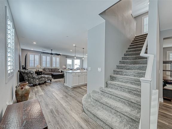 Welcome to your dream home in vibrant Inspirada! This stunning home boasts four spacious bedrooms and 2.5 baths, ideal for accommodating a growing family or hosting guests. The Primary bedroom has a luxurious ensuite and large walk-in closet. The addition of a den and a loft provides versatile spaces for work, play, or relaxation. Impeccably maintained with clean lines and modern finishes such as luxury vinyl floors, plantation shutters throughout, Quartz countertops, SS Appliances, and black fixtures. This home offers an inviting atmosphere for both entertaining and everyday living with a completely finished backyard. The community of Inspirada includes pools, parks, and an exciting social calendar for the entire family. Close to hiking, shopping, restaurants, airport, and the strip! Don't miss out on the opportunity to make this pristine residence yours in the sought after community of Inspirada!