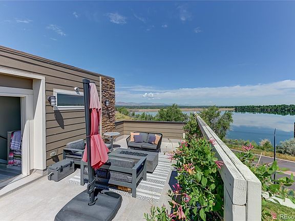 Rare opportunity!! Waterfront property!! Stand-alone cityscape Soho with most amazing PANORAMIC LAKE and MOUNTAIN VIEWS! The essence of urban luxury living! One of the first resales facing the lake in the community ($40K lot premium paid). Built in 2019, this stunning single family home is perfect for an active, low maintenance lifestyle with the ability to lock and leave. As you enter, the ground floor offers an additional space for storage, mud-room, office, or whatever you desire! The main floor is an entertainer's dream! Walk into an expansive, open kitchen/living area, high above McLellan Reservoir and all you see is water!! You have most spectacular northwestern views of the foothills with gorgeous sunsets easily viewed from every single level of this amazing home! And as for the south, this home is overlooking beautifully landscaped community greenbelt. This is by far, the best situated home in the community! The gourmet kitchen offers waterfall quartz center island, walk-in pantry, and stainless-steel appliances, perfect for any aspiring chef! Office nook and half bath located off living area. Upstairs, you will find a spacious bedroom with a private full bath and row of windows with lake and mountain views! The primary suite with an ensuite bath is complete with large shower, double vanity, and a spacious walk-in closet. Laundry closet with washer & dryer included. BALI motorized blinds controlled with a remote all throughout this home! Now the star of the this lovely home - the ROOFTOP DECK! Perfect entertaining space with most incredible views! It offers multiple sitting areas, fire pit table (included), large umbrella for shade and garden/flower boxes! Gas hookup is also available for barbeques and grills. Close to C-470/Santa Fe Dr/Downtown Littleton. The Highline Canal trail is accessed directly to the south, just steps away for hiking or biking. Don't miss out on this fantastic home! VIDEO TOUR: https://www.youtube.com/watch?v=7YSbIg9kTAo&t=50s