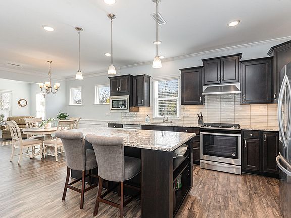 - Bathtub/Shower Combination, Crown Molding, Double Vanity, Eat-in Kitchen, Entrance Foyer, Granite Counters, Kitchen Island, Open Floorplan, Pantry, Master Downstairs, Radon Mitigation, Recessed Lighting, Smooth Ceilings, Storage, Walk-In Closet(s), Walk-In Shower, Water Closet