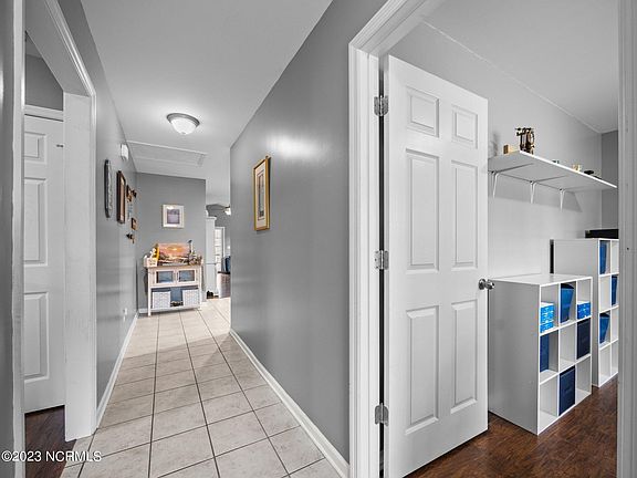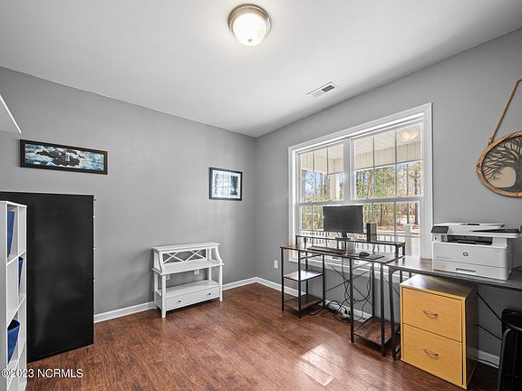 Have you been searching for a home in the Hampstead area? This centrally located 3 bedroom, 2 bath comes with an additional FLEX space that can be a 4th bedroom, an office or a craft room, whatever you need! This beautiful home has a large covered front porch that welcomes you home. The second and third bedrooms as well as the FLEX room are located off the main hall which leads you back to the heart of the home - the kitchen, dining room and living room. There is a laundry room with pantry off the kitchen for lots of extra storage. The primary bedroom is in the back corner of the home with a spa like bathroom boasting a garden tub as well as a walk in shower and dual sink vanity. A walk in closet with lots of built in storage truly makes this room stand out! From the living room, you can walk out to your covered screened in porch (new screens just installed) that runs the length of the back of the house. There's an additional storage closet on one side of the porch - perfect for storing seasonal items. A ceiling fan will keep you cool on the warm summer nights, or walk out and enjoy the freshly painted pergola and the fire pit on our cooler spring evenings as you take in the nature around you! With a BRAND NEW HVAC just installed, you can sit back and enjoy your new home! Be sure to check out the list of upgrades recently completed. This home has NO HOA and is minutes from Kiwanis Park, Ironclad Golf & Beer Garden, Belvedere Pickleball Center, Hampstead Marina, the public water access and only 15 minutes from Topsail Island beaches! Call now to see this beautiful home before it's too late!