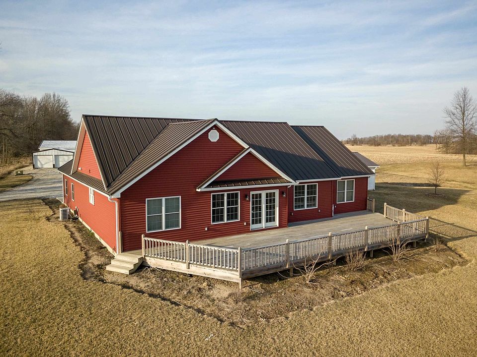 Welcome to this beautiful elevated landscape that offers space, tranquility and gorgeous view, that completely lives up to Indiana's country lifestyle! 2 Homes sit on just over 5 acres in golden Grant county. The main house, built in 2017, features 3 bedrooms, 3 bathrooms, an open kitchen with spacious layout, lovely cabinetry with cabinet and drawer glide layovers. Recent enhancements include; recessed lighting w/dimmers, Cat-6 cable ran to all rooms for mounted TV's, crawlspace and attic lights throughout, Soffit electrical outlets for outdoor lighting to be enjoyed on the massive deck that covers the full length of the back of the home. The Second house, built in 2008 has NEW flooring, paint, trim, outlet switches, kitchen countertop/sink/cabinets and fully remodeled bathroom with new shower/toilet/vanity/sink/light fixtures. The property continues with a pole building (1200sqft) perfect for storage, work, hobbies, and more, a pole barn (880sqft), 3-car detached garage w/loft, pasture ground and huge garden space. Home Warranty is offered and all appliances stay, including brand new washer and dryer. Come see and experience the finest acreage Fairmount has to offer!