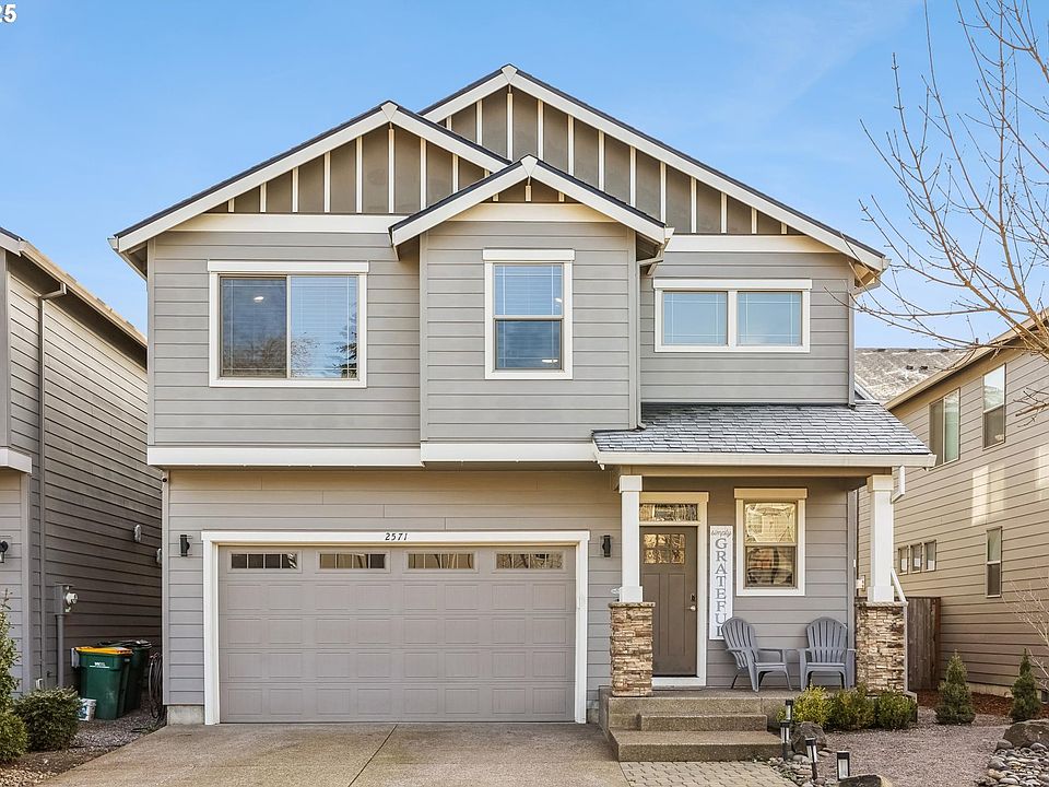 4 bedroom 2.5 bathroom home with 1981sq.ft of living space inside the Hawthorne Gardens community. This home has has been upgraded with premium laminate flooring, granite countertops with tile backsplash, custom alder cabinets with shaker doors, under-mount stainless steel sink, 9' ceilings on the main level, a gas fireplace with tile surround, oversized island with eating bar. No need to share your space because you have double vanity sinks a soaker tub with tile surround, glass shower doors and vaulted ceilings in the main bedroom. This home is equipped with a 240V EV charging station and it is solar ready. Invite your friends during the warm summer nights to hang out in the backyard. You will see rope lights in the backyard, extended patio, turf grass, interior and exterior speakers for your favorite sports game. This home is move in ready and waiting for the perfect buyer to enjoy. Come and see for yourselves!