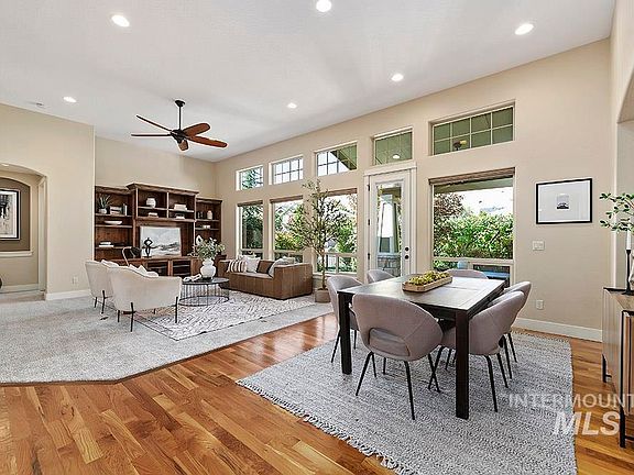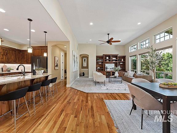 Timeless craftsman situated on a coveted corner lot in desirable Dallas Harris Estates with amazing proximity to the best East Boise amenities including local dining, shopping and outdoor recreation! Welcoming front porch leads into a thoughtfully designed single level highlighted by striking hardwood floors, soaring ceilings and detailed millwork throughout. Entertainer's kitchen featuring double ovens, 6 burner gas range and walk-in pantry flows seamlessly into the light-filled great room and adjoining dining area for convenient open-concept living. Generous master retreat boasts ensuite with dual sinks, walk-in shower and ample closet space while two additional bedrooms offer versatile options for a secluded guest space or dedicated home office. Relax and entertain beneath a spacious covered patio set to a serene backdrop of meticulously maintained landscaping creating the ultimate private backyard sanctuary. Don't miss this rare, single level gem with postcard perfect outdoor living space!