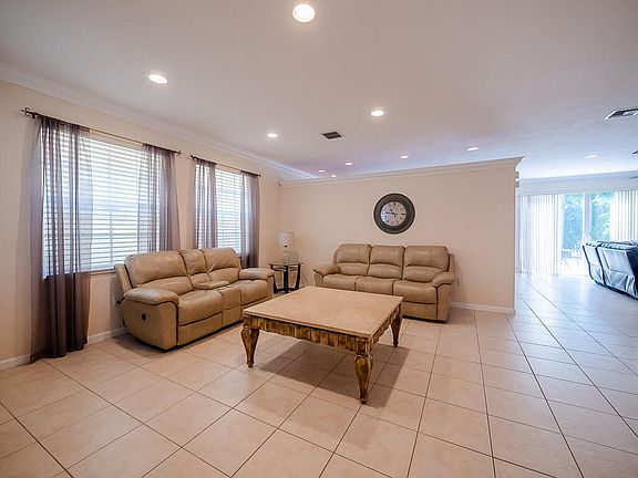 Welcome to this beautiful 4-bedroom, 2.5-bathroom, 2 car garage home, with paved driveway and extended walkway. Nestled in Olympia, a highly desired and man-gated community. Zoned for top-rated schools, shopping, fine dining, entertainment, and the convenience of the Florida Turnpike just moments away. As you step inside, you'll be greeted by a seamless blend of comfort and style. Neutral colors and tile flooring flows throughout. The heart of the home is the large open kitchen, equipped with quality wood cabinetry, sleek granite countertops, and a charming breakfast nook complete with built-in seating. Throughout the living areas, you'll find custom crown molding, decorative accents, recessed lighting and high ceilings All bedrooms are upstairs, including the generous master suite with sitting area, ample dual walk-in closets with rich wood flooring, a tray ceiling, and crown molding. The master bath provides a luxurious experience with double vanities and a separate Roman tub. Outside, there is an extended patio where you can relax and entertain in style. There is also plenty of room for a pool. Notably, this property is equipped with a whole-home generator powered by a 500-gallon in-ground propane tank, with a convenient hookup to the exterior. Enjoy beautiful Florida weather under the 15x13 retractable awning, and from the fenced in yard. This residence is a true gem in a prime location, offering a combination of comfort, style, and practicality that is simply unmatched. Don't miss the opportunity to make it your own and schedule your showing!