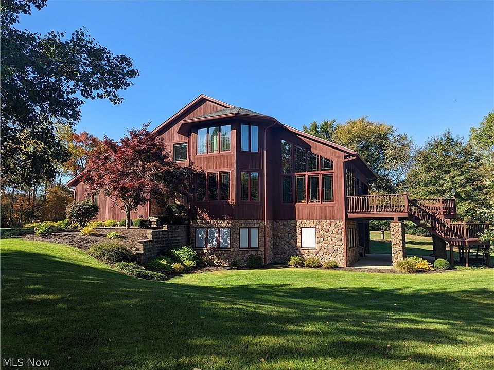 Tucked away in a private wooded setting, this contemporary lodge style home is the absolute definition of custom craftsmanship. Cimb the hand-laid field stone front steps into the two-story entryway and you will quickly find that attention to detail shows through in every corner of this unique design. The eat in kitchen boasts granite countertops, stainless appliances, a large island and custom cherry cabinetry with endless amounts of storage. The oversize great room with large windows almost brings the outdoors inside. Enjoy your morning coffee in the two-story sunroom with stunning custom windows that let in tons of natural light. Work from home? The office with large wrap-around desk keeps everything you need at your fingertips. Upstairs you will find a large master suite with a spacious walk-in closet and on-suite master bath with L-shaped dual vanity complete with make-up station. A second bedroom and full bath round out the second floor. The walk-out lower level is home to the th