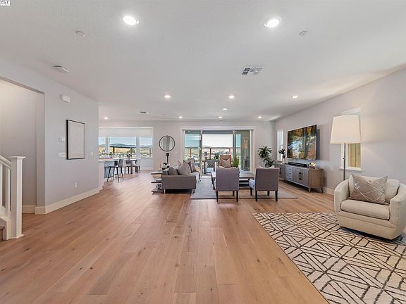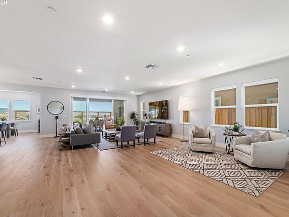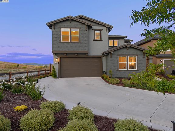 Welcome to this stunning home on a premium lot & an end-of-court location. The backyard backs to open space, providing beautiful views of the hills. Enjoy outdoor relaxation & entertainment on the covered patio with a gas firepit & a well-maintained lawn area featuring a putting green. Inside, the kitchen features a large center island, quartz counters, tile backsplash, & GE appliances including a 5-burner gas cooktop. A walk-in pantry & butler's pantry provide storage & convenience. The open concept layout connects the kitchen to the family room, with sliding doors that lead to the backyard. The primary bedroom boasts French doors leading to the patio, two walk-in closets with organizers, & a luxurious bathroom with upgraded herringbone tile, a large soaking tub, & a spacious shower. A full bed & bath downstairs offer flexibility for guests or multigenerational living. The upstairs features a large loft area & a laundry room with a sink and additional storage. Additional features include 9 ft ceilings, abundant windows for natural light, Mud room, Tesla charger, smart home features, & built-in WiFi. The home is conveniently located near Downtown Danville, San Ramon City Center, 680 freeway, schools, & trails. Community amenities include a sports park, clubhouse, & pool.