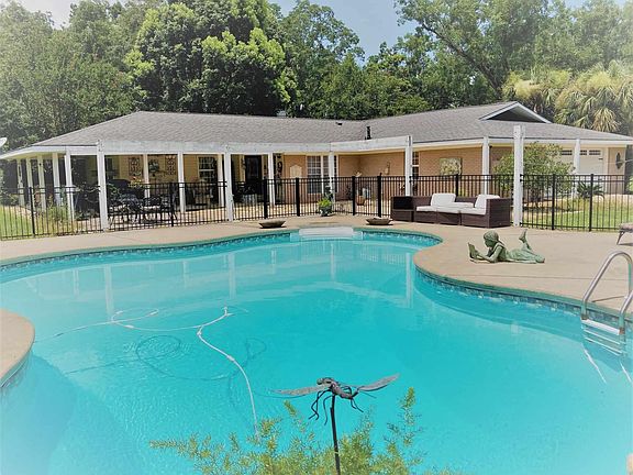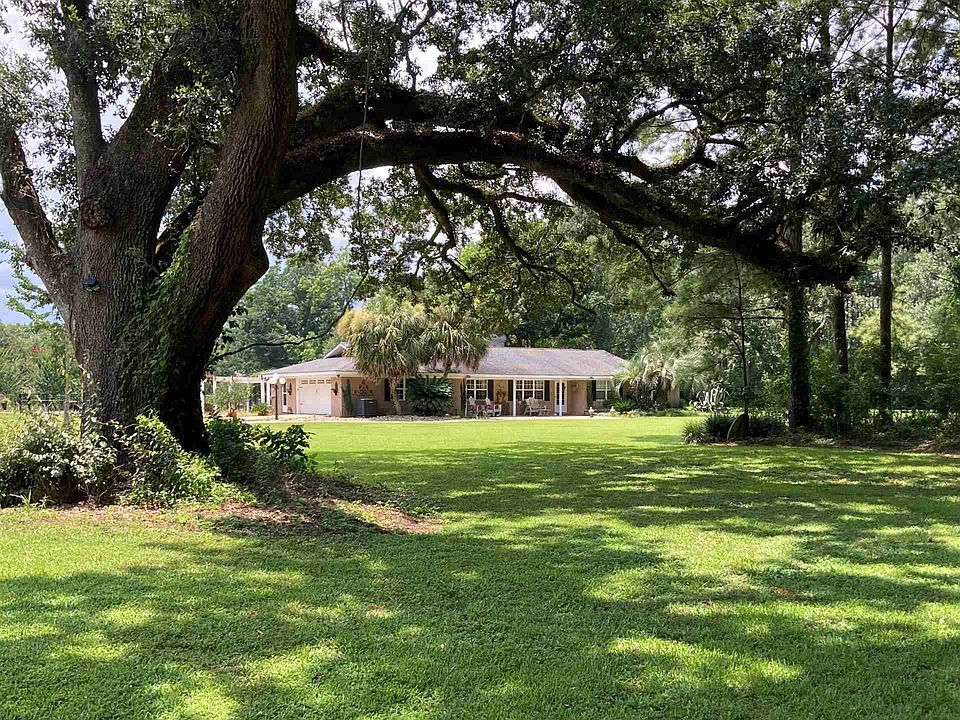 Rosinton--Privacy on 7 acre parcel with no restrictions. Solid built home has 5 bedrooms and 3 baths. Two bedrooms currently used as office space and playroom. Floor plan allows for 2 masters suites. Home has lots of storage space & tile flooring throughout. Oversize garage includes a pantry and utility area. Property includes large fenced pool area with gas lines for fire pit and accent lighting if desired, and covered & open patio areas Also has a large 40x40 Kemko metal building with lean-to's. large oaks, fruit trees, pecan trees & ornamental plantings. Convenient to new Beach Express and minutes to Mobile, Al., Pensacola, Fl. and Gulf Shores beaches.