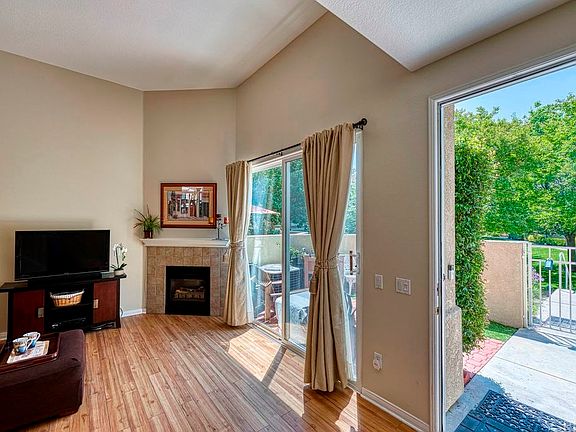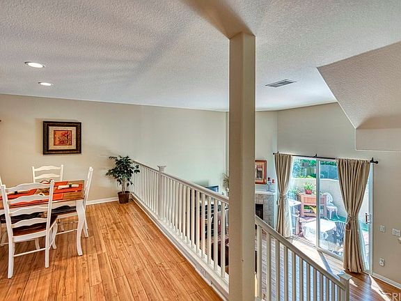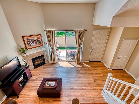 Wonderful Townhouse in sought after Stevenson Ranch ~ Tri-level Town home with lots of light in perfect location in tract ! Huge Eat - Kitchen with ample cabinets and storage and tile floors... Separate spacious dining area .... Living room with fireplace, vaulted ceiling and natural light ... both with laminate wood like flooring. Upstairs has all new carpeting and bathrooms with new laminate floors. Large master suite has walk in closet and dressing area with dual sinks. Wonderful front patio for entertaining surrounded by flowers and opens beautiful green belt New hot water heater ~ Direct access to over sized 2 car garage with nearly $2,000 spent on extra built in storage racks Walk to community pool ...just blocks to the freeway ... A fantastic location !!