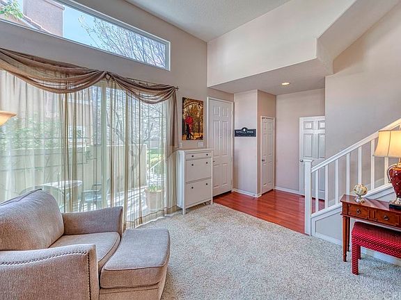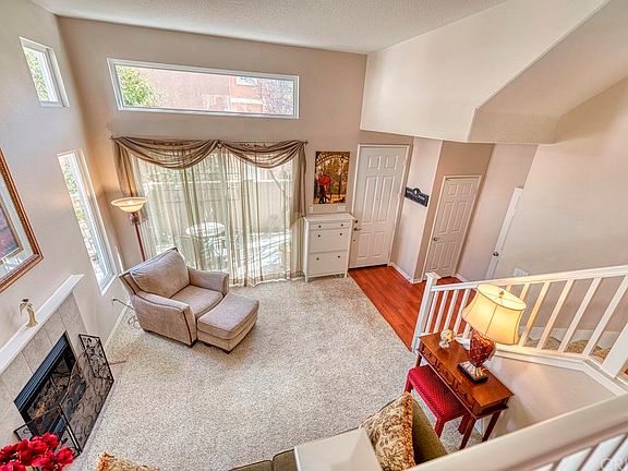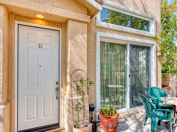 Absolutely lovely Stevenson Ranch Townhome! Highly desired end unit with a large private patio, this is the one you have been waiting for! The enterance draws you in with the vaulted ceilings and all the natural light. The living room offers a cozy fireplace encased with tile and white mantel, recessed lighting and slider out to the front patio. Wood laminate floors are found throughout the entry, kitchen, family room and formal dining area. The kitchen offers a large island with bar seating, recessed lighting, white appliances and connected living room. The master is very spacious boasting ceiling fan, walk in closet and wood faux blinds with delicate drapery. The master bath has dual sinks w/decoarative backsplash, privacy door for toilet and glass enclosure for shower and tub. The secondary bedrooms are a Jack and Jill set up and offer great space. Features of this home include raised berber carpeting, impressive cabinetry in garage, 6 paneled doors, 1 neighbor, lots of guest parking and open greenbelt in front.
