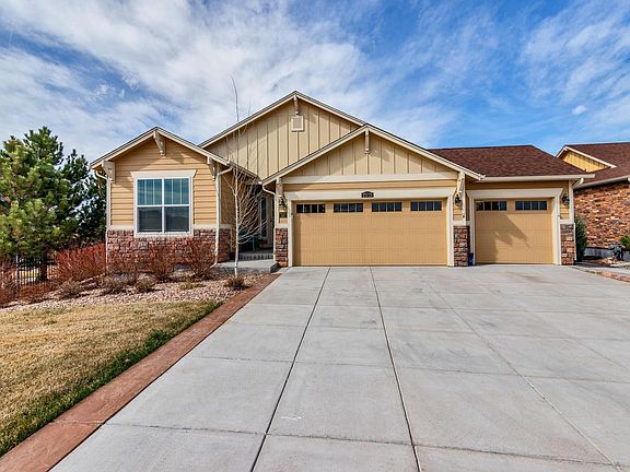 Stunning on a large corner lot home with Finished Basement & semi private road and park. Pride of ownership shows with the Original owner's personal upgrades. Custom granite throughout with island for sitting space, lots of hardwood floors, upgraded carpets, granite tops and movie theater / family hangout with surround sound in finished basement. These features are on top of what the builder installed for this model home. This 3-bedroom 2 bath open floor plan home is across the street to the Swimming Pool, Clubhouse Playgrounds and Parks. Close to Buckley AFB, DIA, E-470, Amazon & the new Gaylord Rockies Resort.