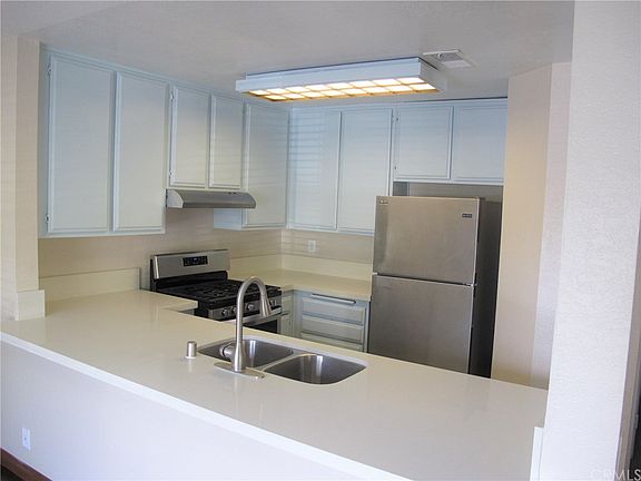 Charming one bedroom, one full bath upstairs condo in the highly desirable community of White Oak! Brand new white quartz countertops, wood laminate flooring, five-burner gas stove, stainless steel refrigerator, dishwasher, remodeled bath - and washer and dryer! A/C included! Spacious living room and dining area open to the kitchen. Bedroom has plenty of closet space (with in-closet lighting). Expansive front patio. Perfect private corner location, no one in front of you! Ample parking right out front. One designated carport as well. The White Oak community is tranquil with a beautiful pool and spa nearby. The home is situated within walking distance to Sycamore Plaza, containing shops such as Stater Brothers, Starbucks Coffee, Chipotle Mexican Grill and more! Toll Roads and major freeways within short driving distance. Major shopping centers The Arbor and The Orchard just down the road. Come visit and make White Oak your home!