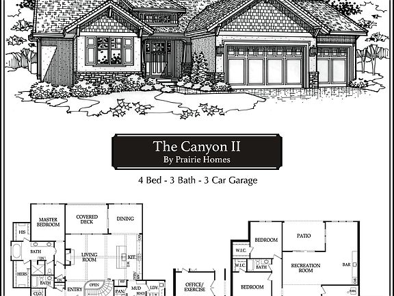 Prairie Homes "Canyon II Rev" 3251 sq ft. Magnificent stone fireplace floor to ceiling, vaulted family rm, upgraded trim pkg, custom over-sized island with granite on ALL surfaces. GE Slate Advantium appliances, soft close doors standard,walk in pantry +add'l roll out shelf pantry. His and Hers master closets, double vanities, free standing tub and separate shower. Covered deck to view nothing but WOODS! Finished LL with 2 add'l bedrms, bath & rec room w/wet bar. Zero entry from garage no step