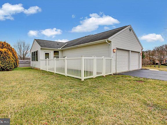 Welcome Home to this Paul Moyer Ranch Home located in New Hanover Township. This 3 Bedroom, 2 Bath single-floor living has had so many upgrades since 2021. Hardwood floors flow through the main living area and continue into the main bedroom. The kitchen upgrades in 2021 include new quartz countertops, upgraded stainless appliances, Kraus sink and faucet, tile backsplash, recessed lighting, and new garbage disposal (2022). Also, in 2022 a Reverse osmose water system was added to the kitchen sink and refrigerator. Some other upgrades in 2021 were some updated electrical and lighting features in several rooms. Large laundry/utility room with GE High Capacity washer and dryer, along with a stainless steel utility sink. A pet or child fencing was added to the front porch and a small area of the backyard. 2-car garage includes Telsa car charger. Partially finished basement, with bilco walk-out, provides storage area with additional space. New window coverings throughout the home. New water softener. All toilets have been replaced with ADA toilets.