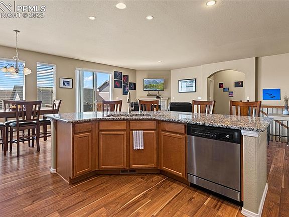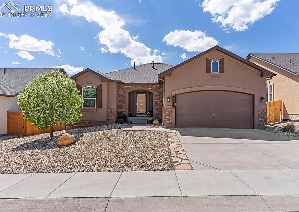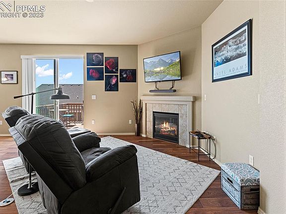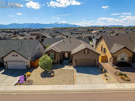 A meticulously designed 3-bedroom, 3-bathroom home with an additional home office. Views of Pikes Peak. Just 10 minutes from Peterson Air Force Base, this home combines a convenient location with a warm, sophisticated ambiance. As you step inside, an inviting, open concept floor plan unfurls. The living area features an elegant electric fireplace, providing a cozy atmosphere for those chilly Colorado evenings. Natural light floods the space, enhancing the open and airy feel while complementing the modern, stylish décor. Enjoy your culinary creations in the spacious, state-of-the-art kitchen, equipped with high-end appliances and plenty of counter space. The adjoining dining area, seamlessly connected to the kitchen, is perfect for hosting dinner parties or enjoying a family meal. The home offers four generously-sized bedrooms. The master suite is a luxurious retreat, complete with a spacious walk-in closet and an en-suite bath. Three additional bedrooms provide ample room for family, guests, or a home office setup. Explore the lower level to discover a fully finished walkout basement. Here, you’ll find a superbly crafted bar – the ideal spot for entertaining friends or relaxing after a long day. Step out from the basement onto a beautifully landscaped backyard. One of the home’s standout features is its expansive deck. Perfect dining or simply enjoying the Colorado sunshine, this outdoor space presents a panoramic view of the famed mountain. Additional features include an attached two-car garage, a dedicated laundry room, and an energy-efficient HVAC system, ensuring your comfort through every season. Experience the perfect blend of style, comfort, and convenience in this remarkable home.