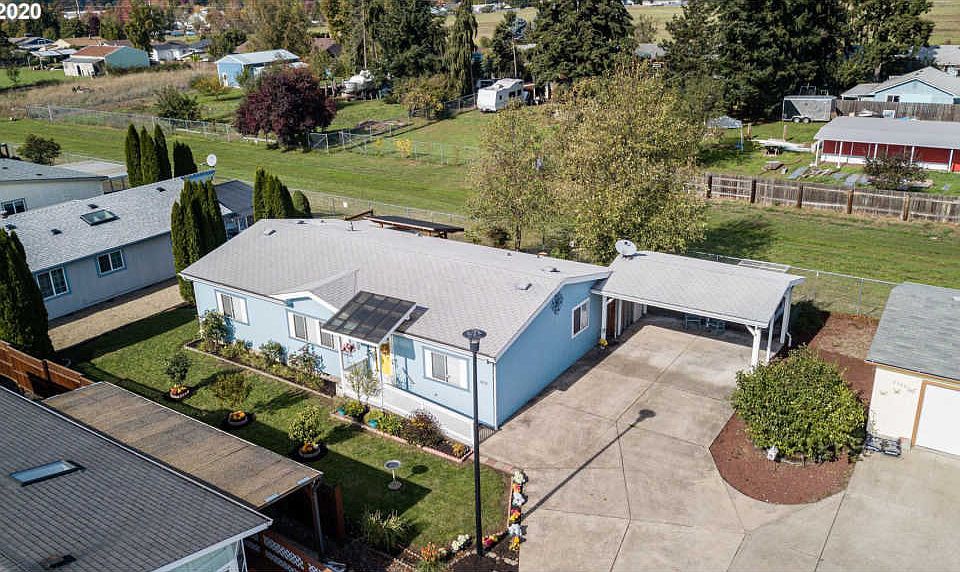 Cozy manufactured home (with land) in 55+ park. No space rent since you will own the land and HOA are $42 per month. New kitchen sink, disposal, dishwasher, water heater and patio. Nicely done yard with space for gardening. There's a plum, pear and peach tree. Seller is leaving refrigerator, washer & dryer, island cart and two window air conditioners. Seller is including a 1-year home warranty and 6-months of yard maintenance for worry free moving while you get settled in your home.